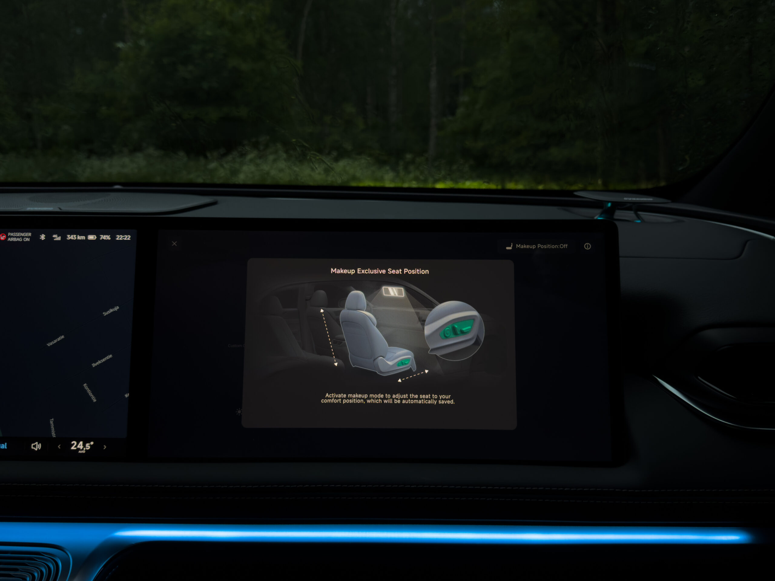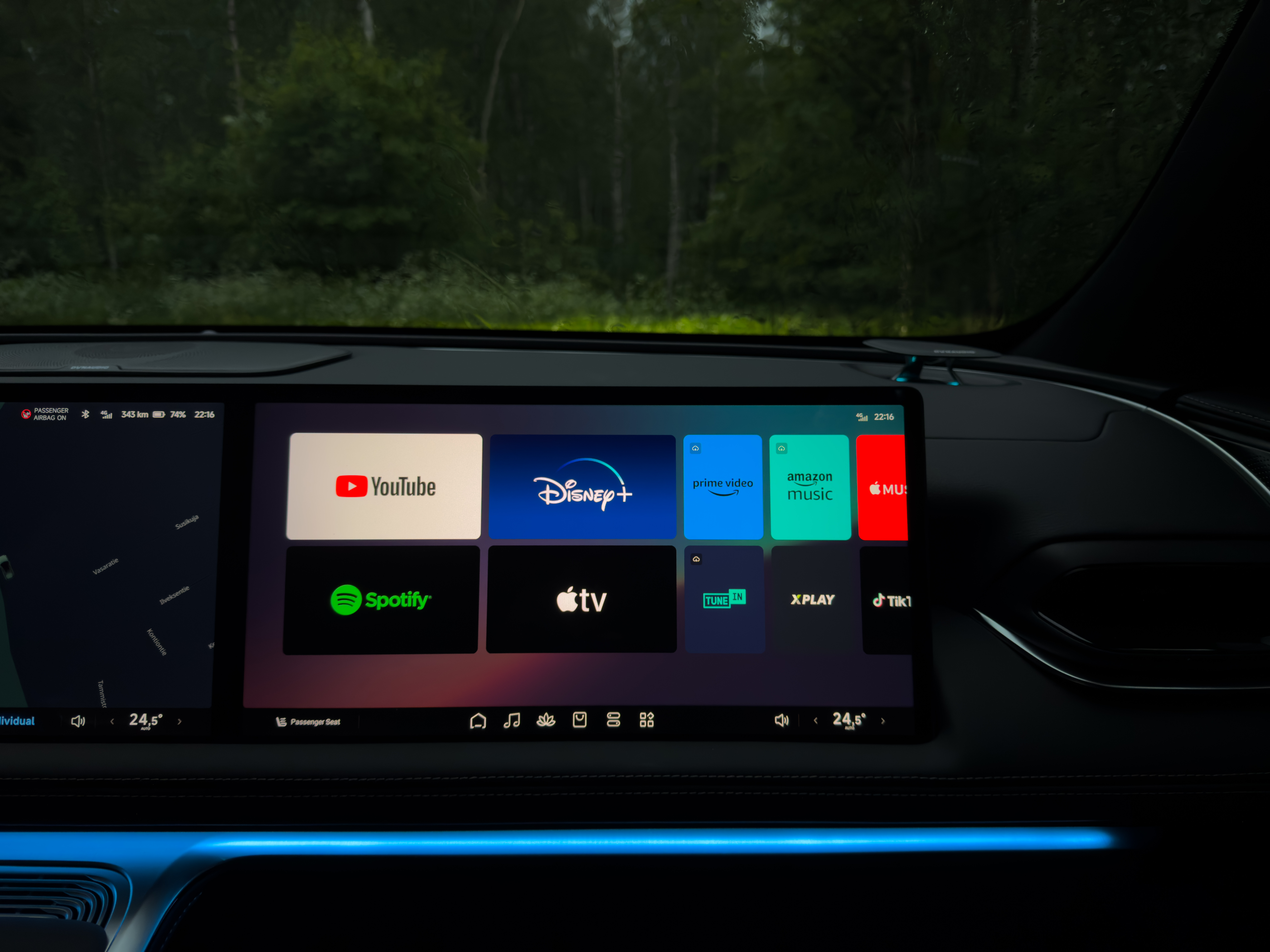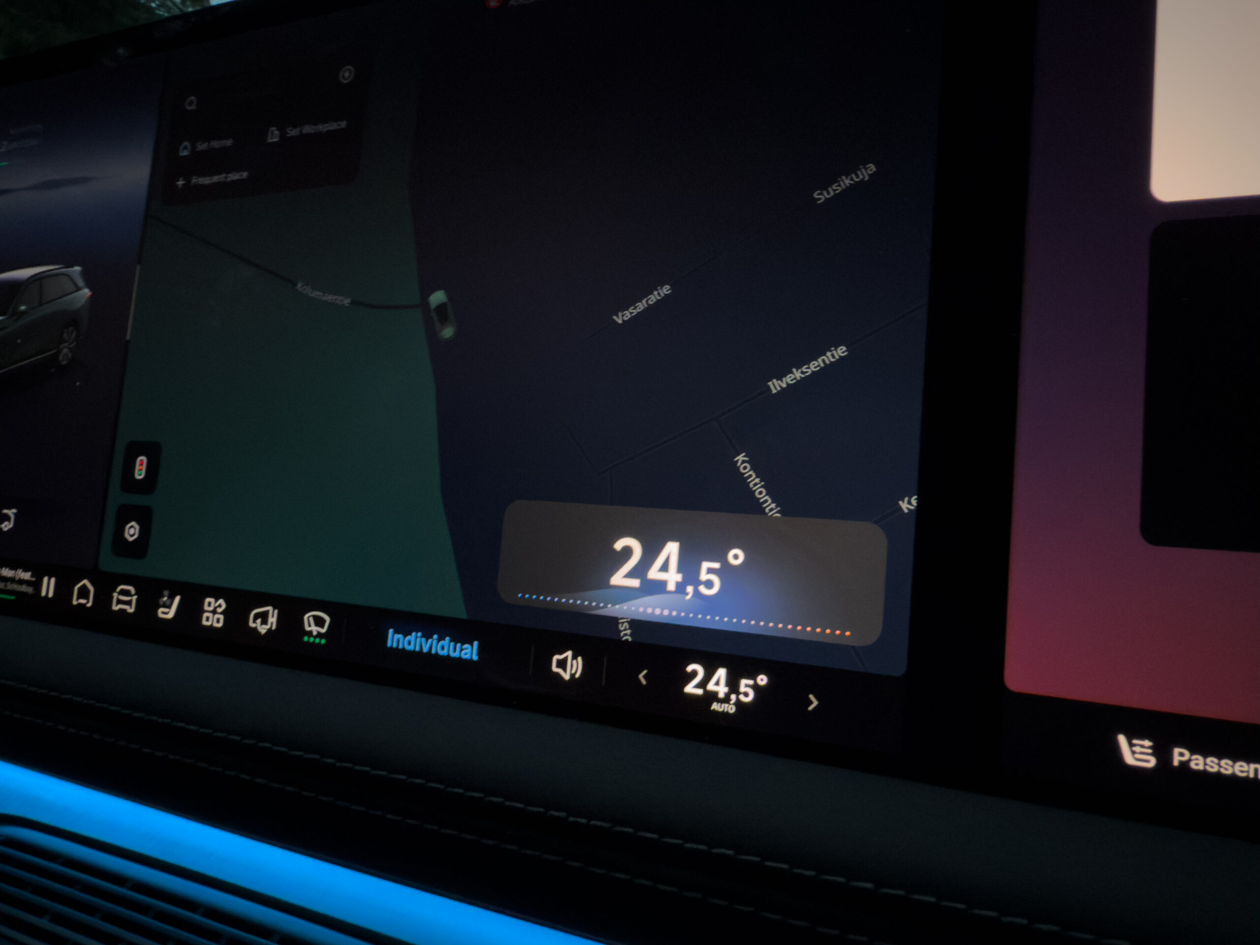 Yksikään matkustaja ei jää ilman huomiota. Apukuljettajan paikalle on varattu oma korkealaatuinen näyttö, josta saa käytännössä kaikki striimauspalvelut käyttöön. Tätä on viety todella pitkälle, sarjoja voi katsoa omassa rauhassa, omilla kuulokkeilla — häiritsemättä muita matkustajia. Toimintoja ei tehty autoon vain showroomissa esiteltäväksi vaan myös oikeasti käyttökelvolliseksi ja käyttäjäystävällisesti.